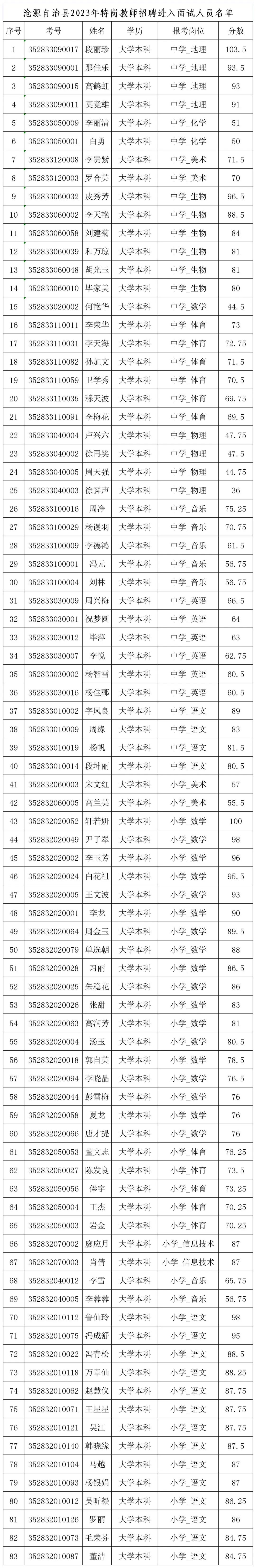 附件:滄源自治縣2023年特崗教師招聘進(jìn)入面試人員名單