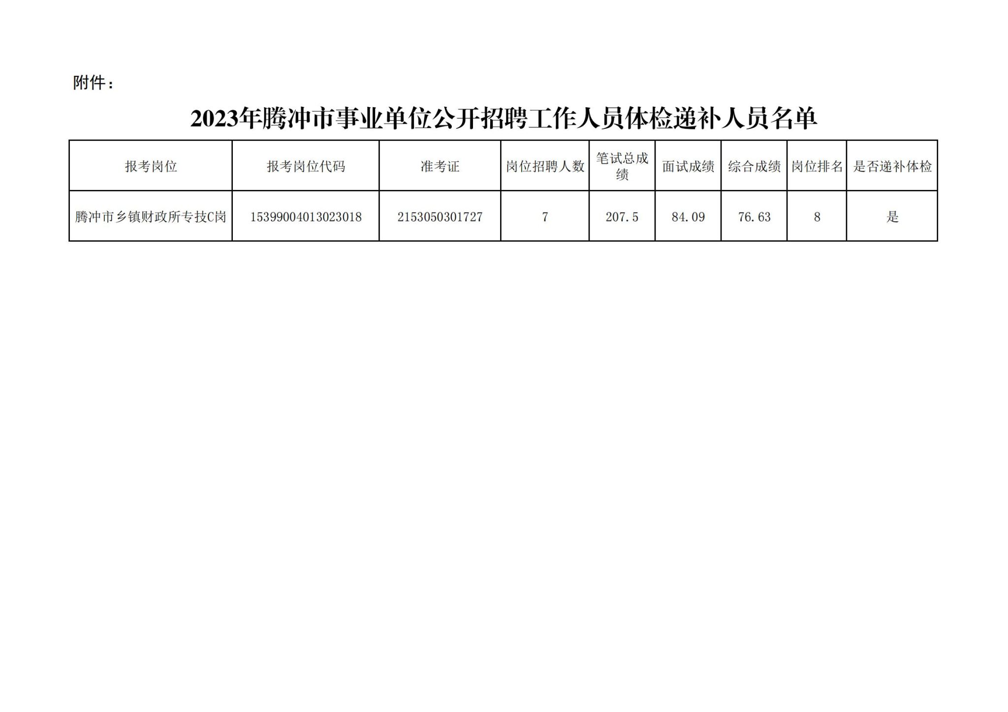 2023年騰沖市事業(yè)單位公開招聘工作人員體檢遞補人員通知