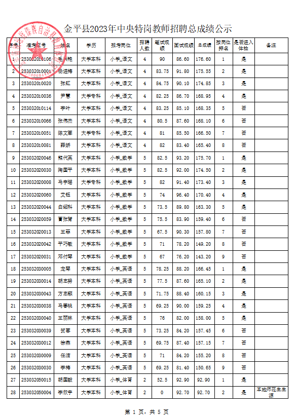 金平縣2023年中央特崗教師招聘總成績公示 來源:https://mp.weixin.qq.com/s/TeIbCqMvwVy0ry9K9kyi_A
