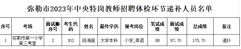 彌勒市2023年特崗教師招聘體檢環(huán)節(jié)遞補(bǔ)人員名單公示