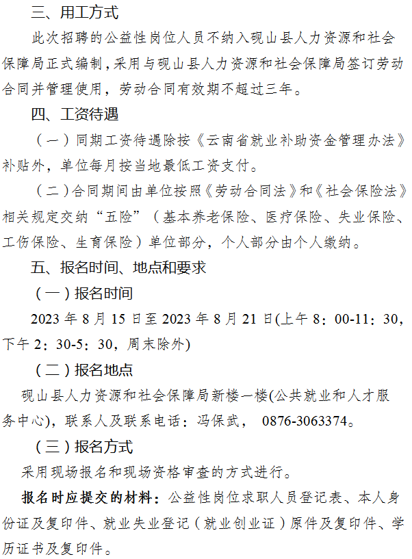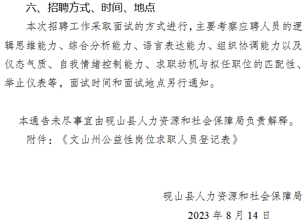 2023年文山州硯山縣人力資源和社會保障局招聘公益性崗位人員公告
