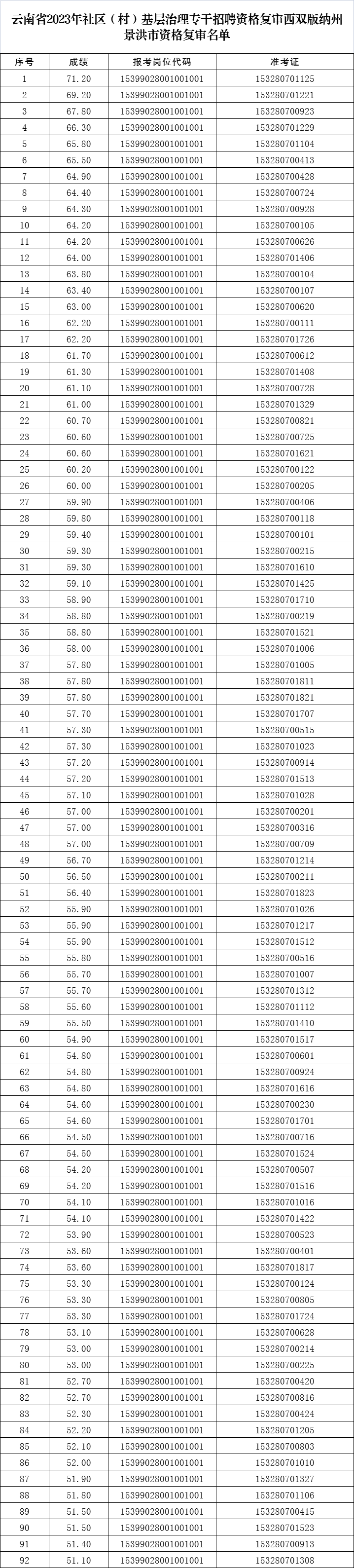附件:云南省2023年社區(qū)(村)基層治理專干招聘資格復(fù)審西雙版納州景洪市資格復(fù)審名單