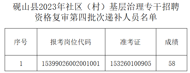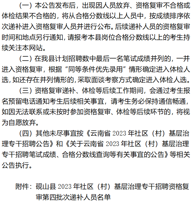硯山縣2023年社區(qū)(村)基層治理專干招聘資格復(fù)審第四批次遞補(bǔ)公告