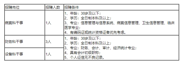 【招聘】病案科、財(cái)務(wù)科、設(shè)備科需招聘干事5名