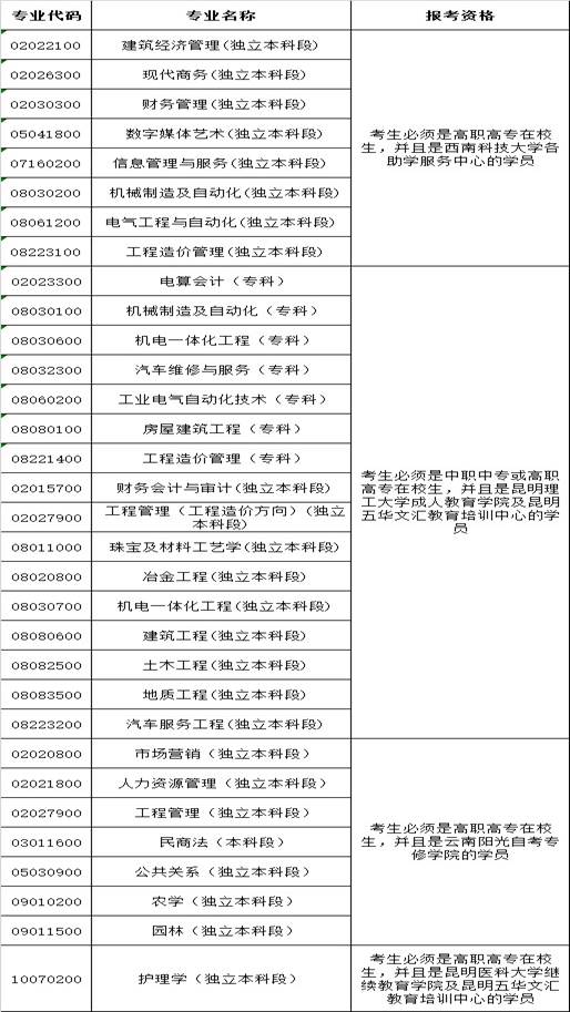 ②報(bào)考下列專業(yè)的考生,必須具備下列資格,否則不能取得畢業(yè)證書。