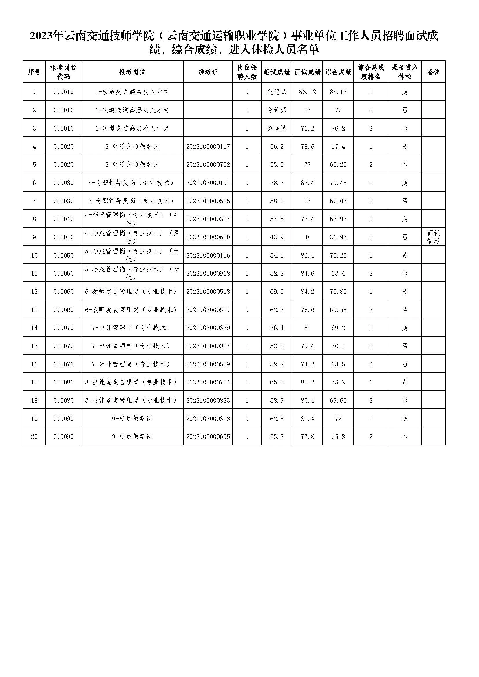 2023年事業(yè)單位工作人員招聘面試成績(jī)、綜合成績(jī)、進(jìn)入體檢人員名單