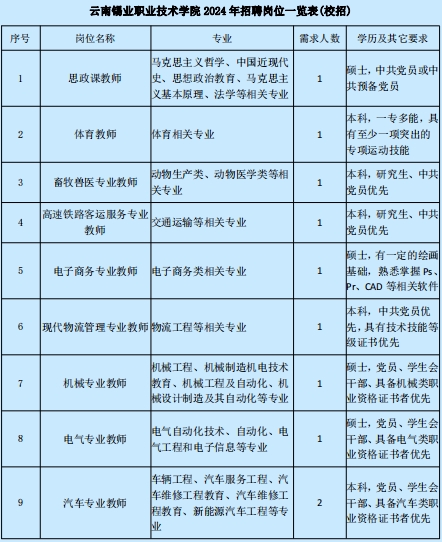 云南錫業(yè)職業(yè)技術(shù)學(xué)院招聘簡章