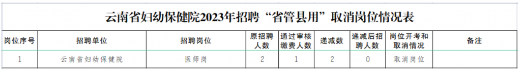 2023年云南省婦幼保健院招聘“省管縣用”工作人員取消招聘崗位情況公告