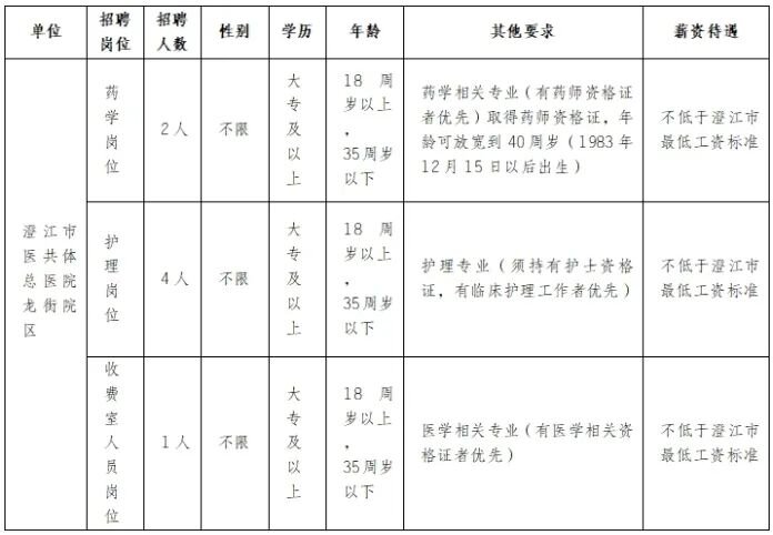 澄江市醫(yī)共體總醫(yī)院龍街院區(qū)因工作需要,委托澄江市啟澄人力資源有限責(zé)任公司面向社會公開招聘編外人員7人,現(xiàn)將有關(guān)事項公告如下: