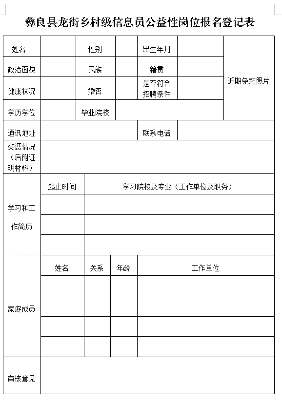 附件:彝良縣龍街鄉(xiāng)村級信息員公益性崗位報名表