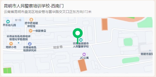 交通:因昆明市人民警察學(xué)校校內(nèi)不提供對外停車業(yè)務(wù),參考人員請盡量選擇公共交通方式前往。請乘坐5路、22路、47路、69路、70路、72路、75路、182路、235路、249路、A1路、A12路、Z71路、919B線公交車輛考生到佳園小區(qū)(白龍路)站下車;乘坐132路公交車輛考生到曇華路北段下車。各參考人員也可以通過百度、高德等導(dǎo)航軟件公共交通出行方式自行查找到達(dá)的公交車。具體位置圖如下: