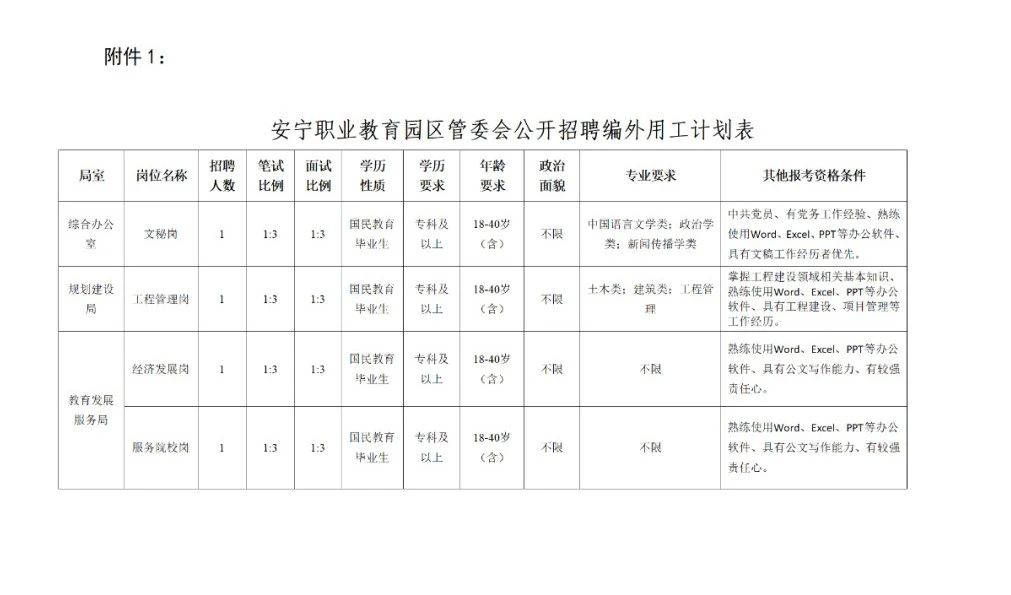 附件:1.安寧職業(yè)教育園區(qū)管委會(huì)公開(kāi)招聘編外用工計(jì)劃表