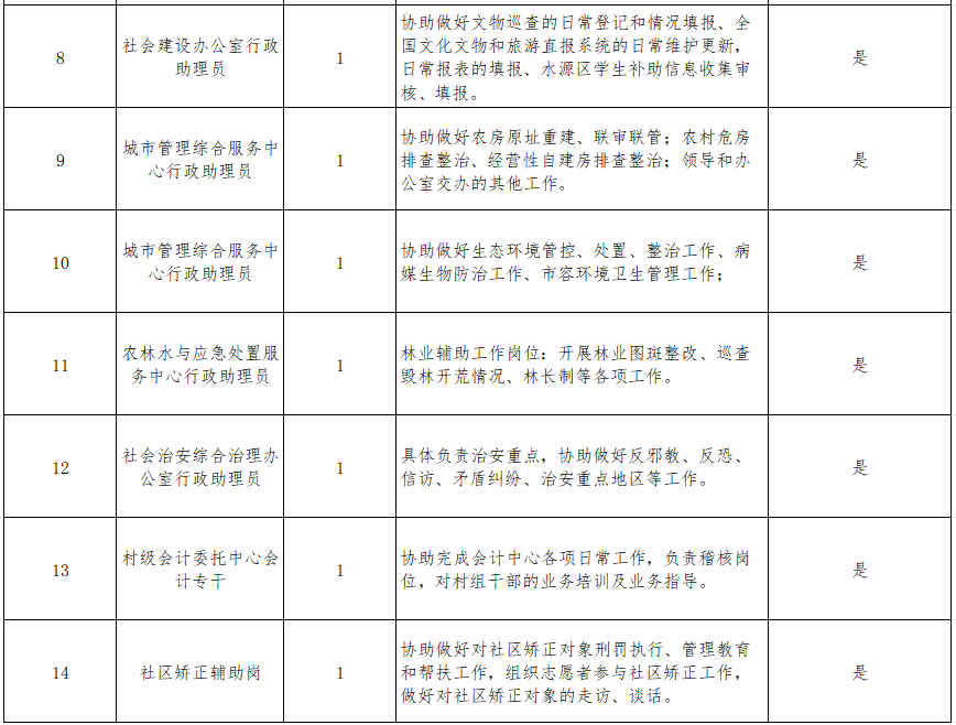 本次招聘街道編外輔助人員共14人,具體崗位為: