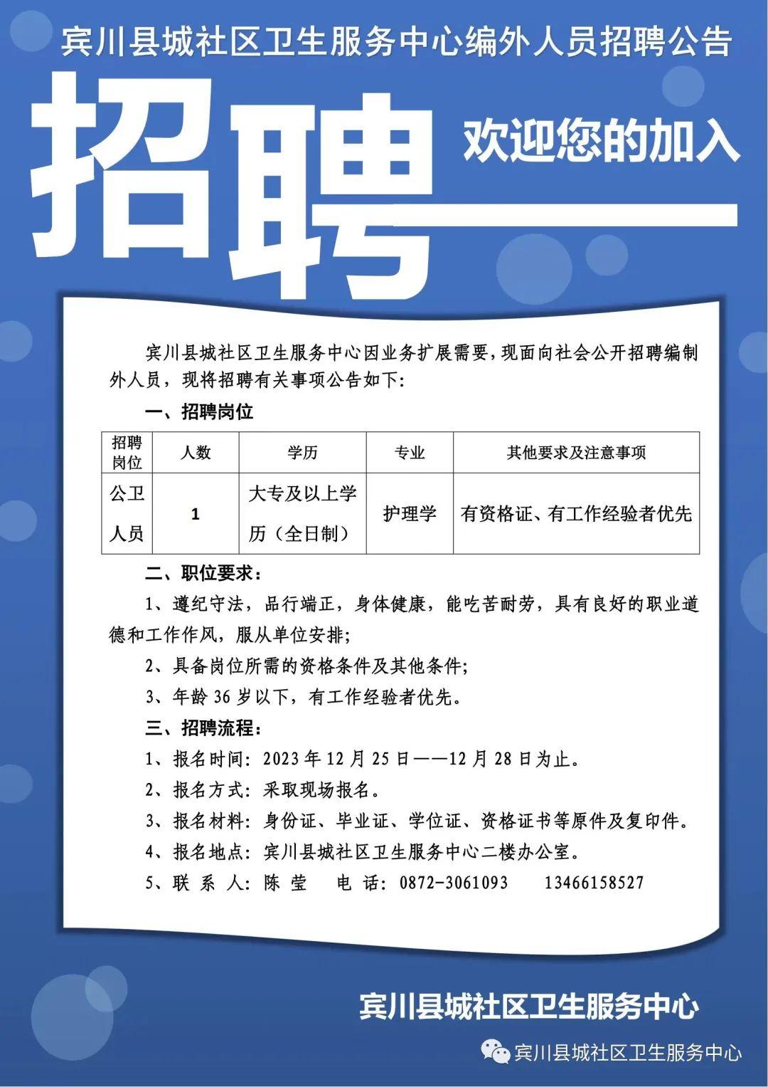 2023年大理州賓川縣城社區(qū)衛(wèi)生服務中心編外人員招聘公告