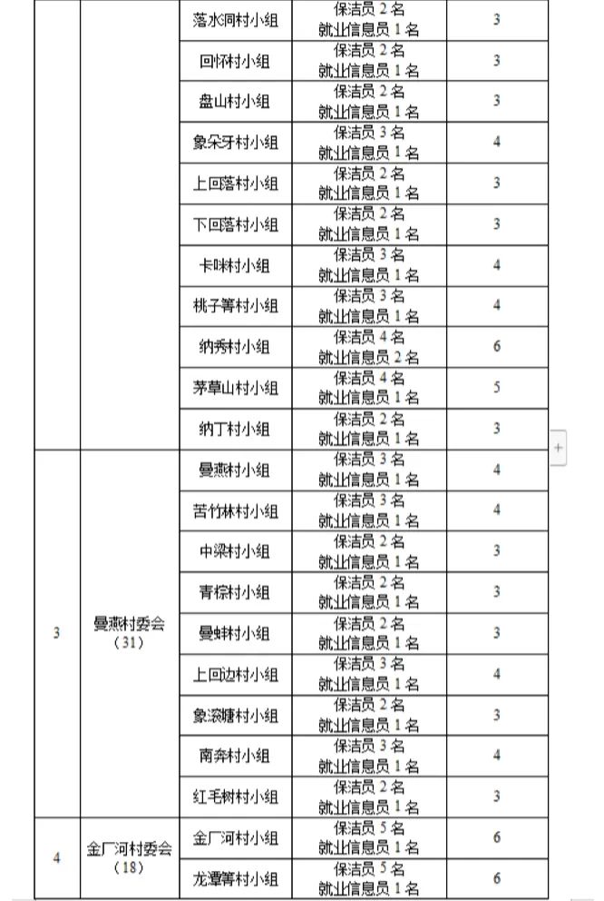 七、勐伴鎮(zhèn)鄉(xiāng)村公益性崗位名額分配