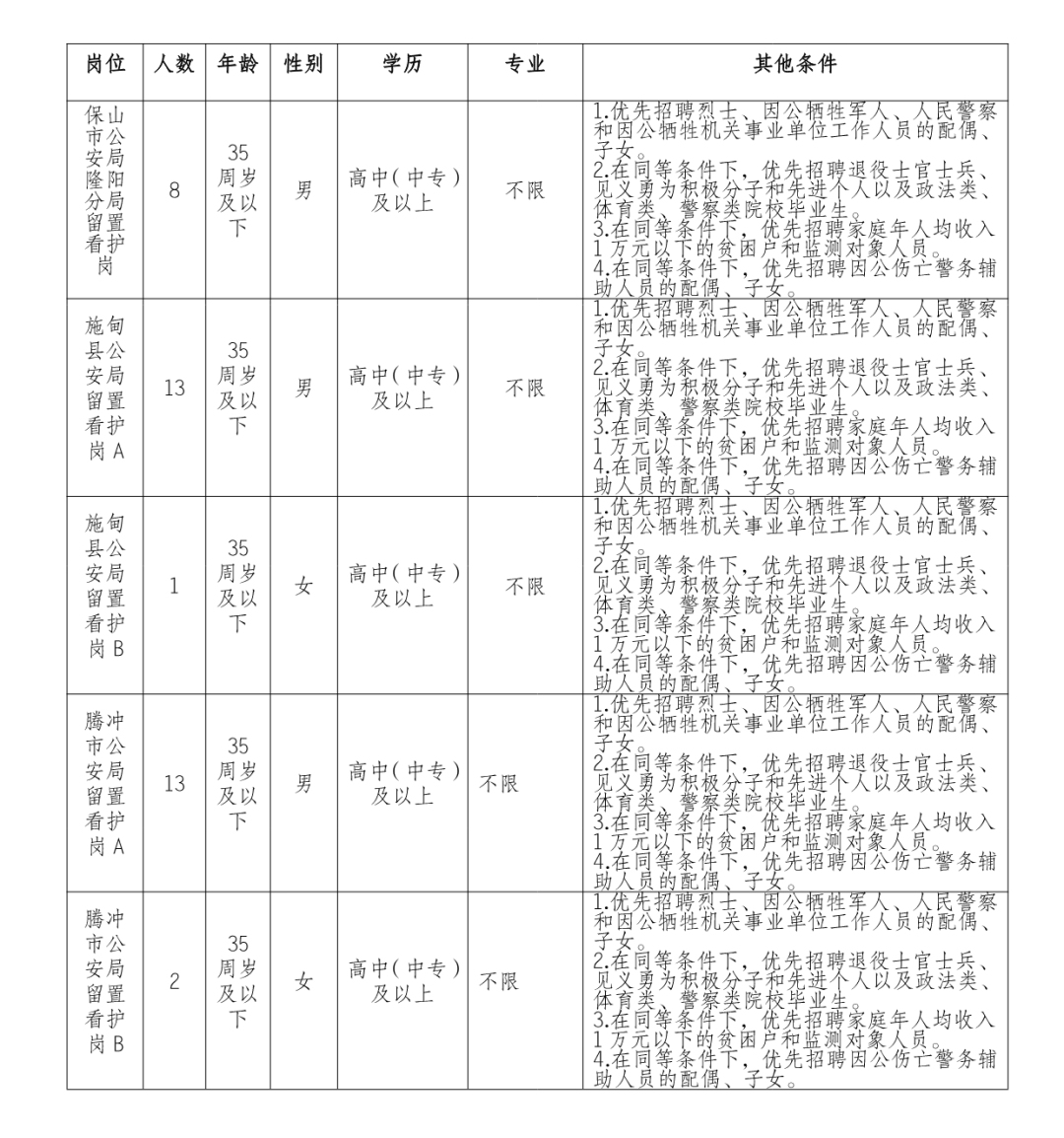2.報(bào)名地點(diǎn):保山市公安局留置看護(hù)支隊(duì)、各縣(市、區(qū))公安局政治處,可自行選擇報(bào)名點(diǎn)。