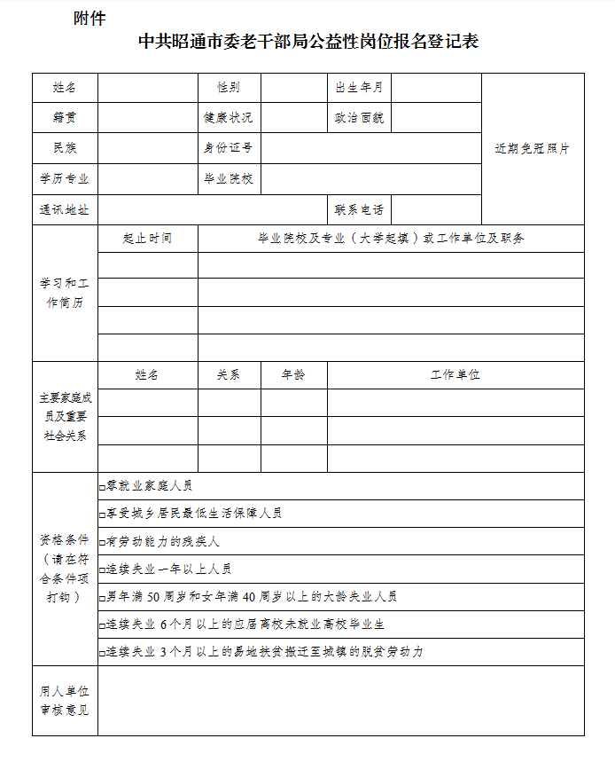 附件:中共昭通市委老干部局公益性崗位報(bào)名登記表