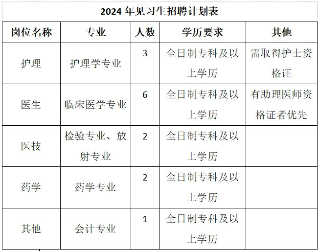 為促進青年就業(yè)見習,按照有關規(guī)定要求,結合我院發(fā)展規(guī)劃、科室設置及科室人員需求,現擬面向社會公開招聘仁德街道辦事處中心衛(wèi)生院2024年就業(yè)見習人員。