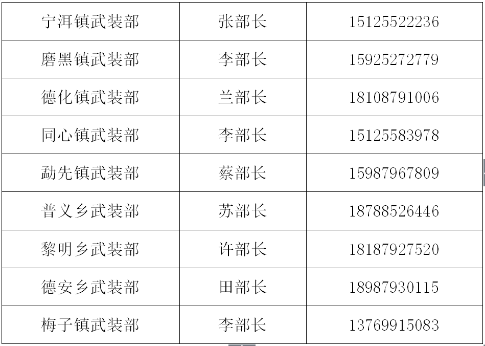 2.各鄉(xiāng)(鎮(zhèn))武裝部聯(lián)系方式: