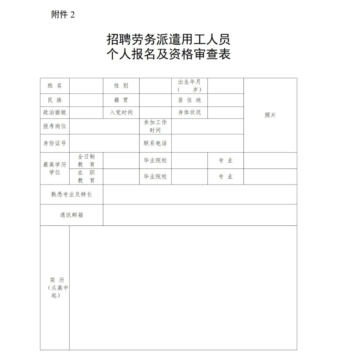 2.招聘勞務(wù)派遣用工人員個人報名及資格審查表