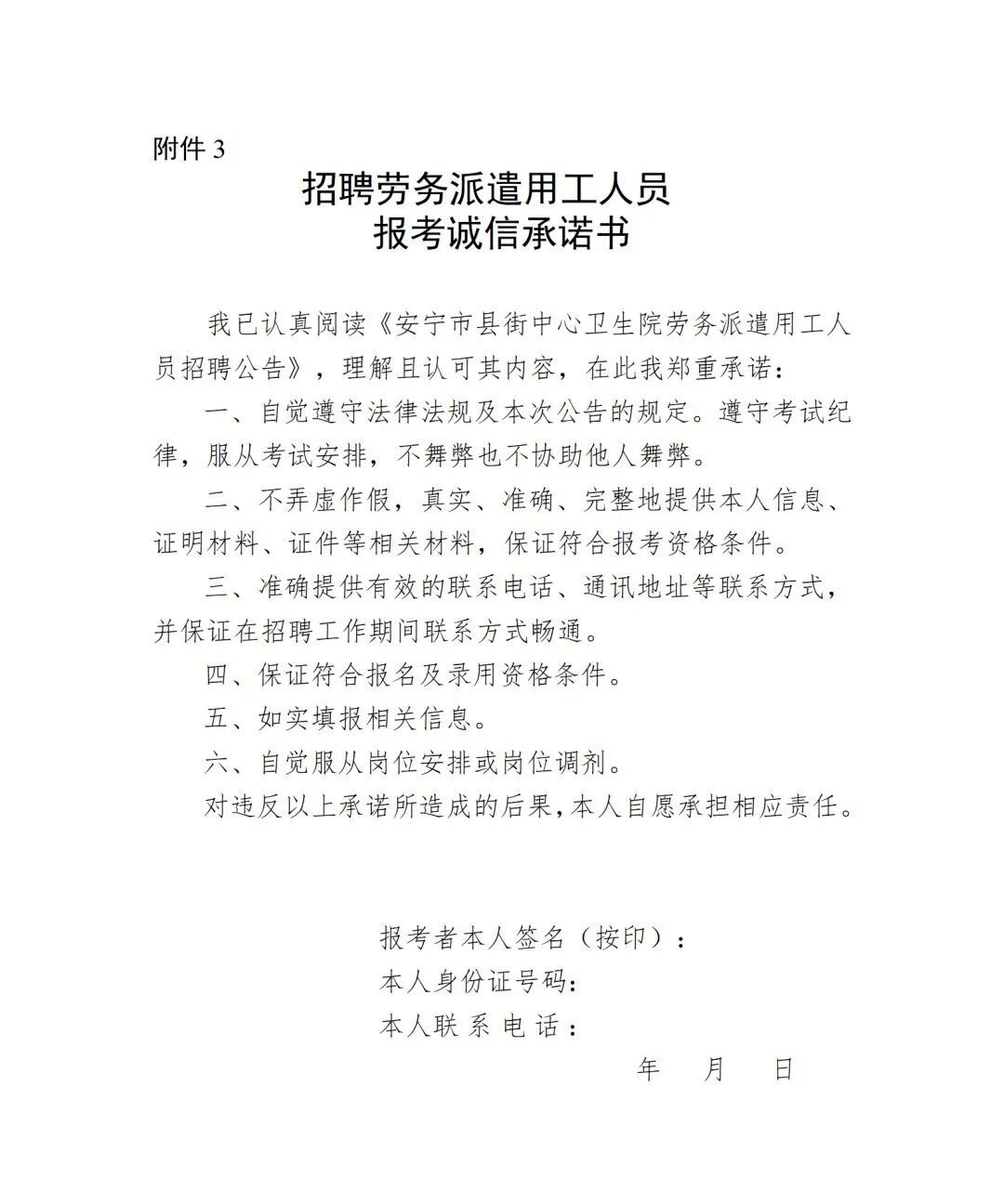 3.招聘勞務(wù)派遣用工人員報考誠信承諾書