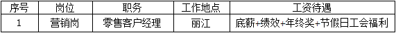 因工作需要,恒豐銀行麗江支行委托麗江興順勞務(wù)派遣有限公司面向社會公開招聘零售客戶經(jīng)理,具體內(nèi)容如下: