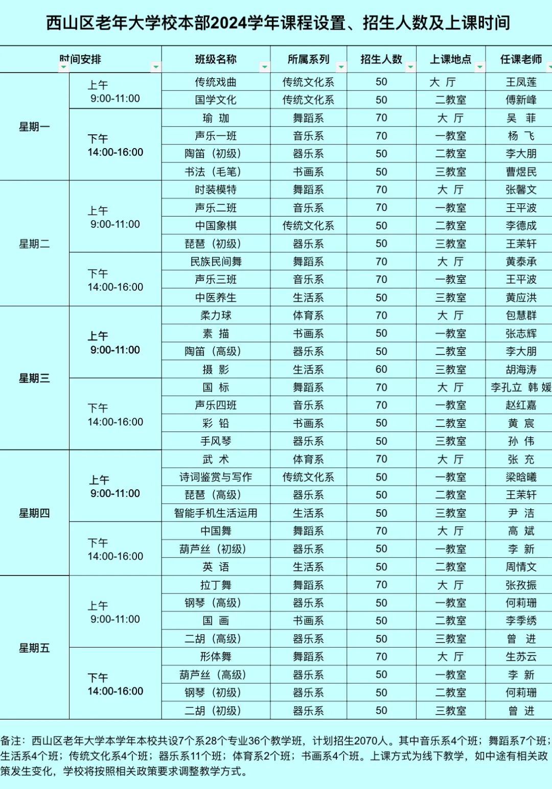 2.《西山區(qū)老年大學(xué)分校2024學(xué)年課程設(shè)置、招生人數(shù)及上課時(shí)間》