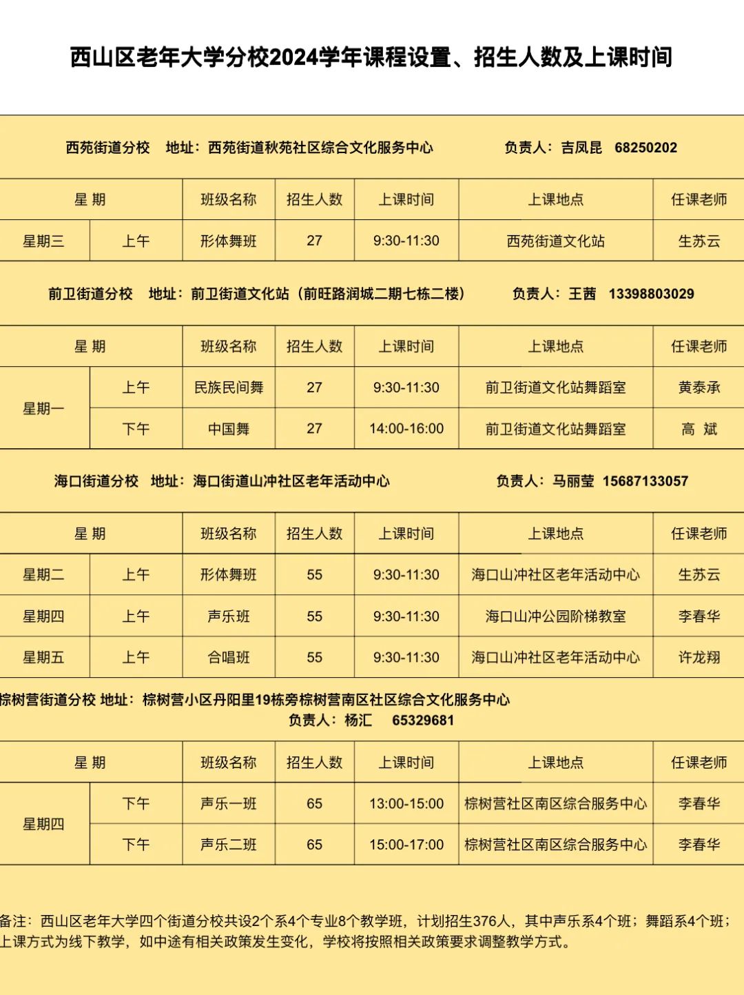 1.《西山區(qū)老年大學(xué)校本部2024學(xué)年度課程設(shè)置、招生人數(shù)及上課時(shí)間》