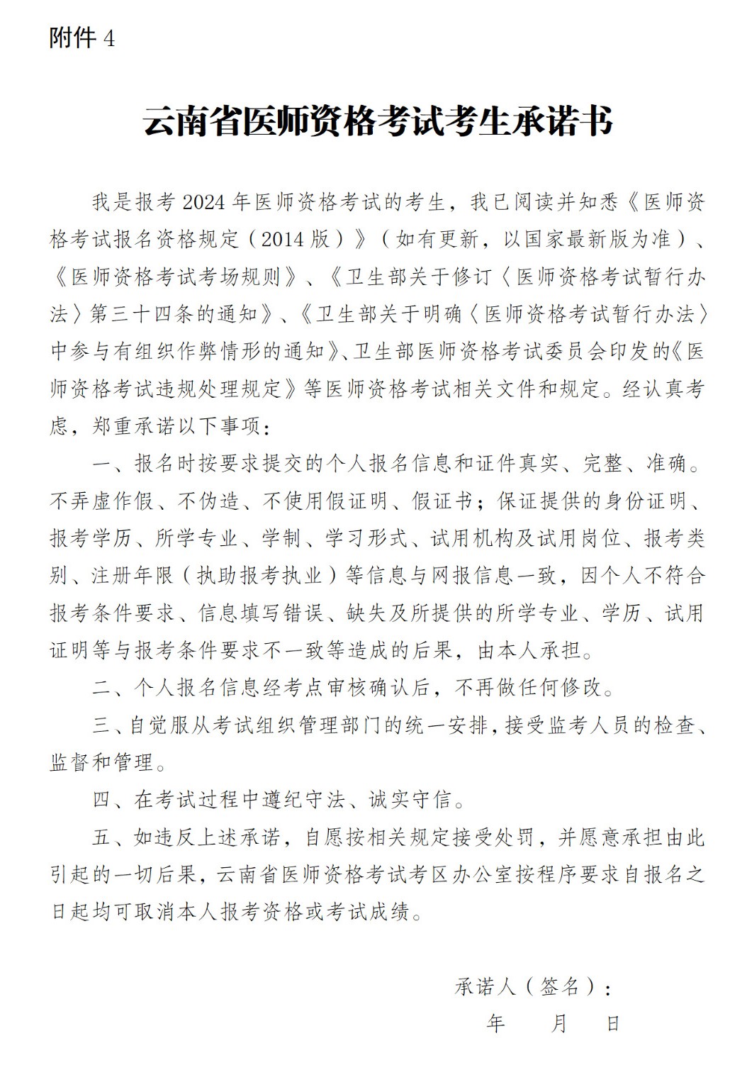 3.考生資格審核必須填寫《云南省醫(yī)師資格考試考生承諾書》(見附件4)。