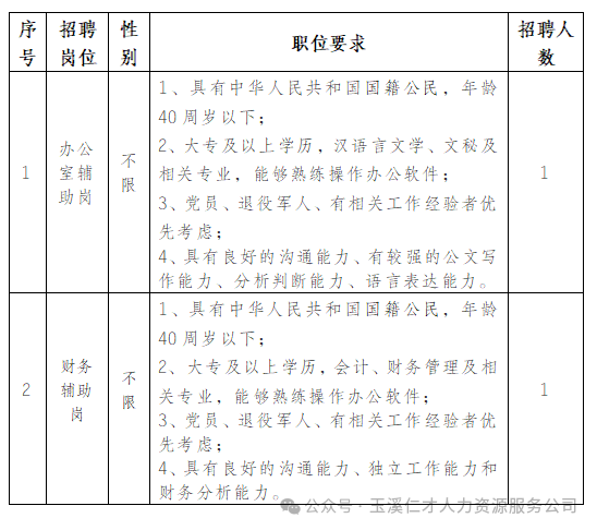 因工作需要,興誠會(huì)計(jì)委托玉溪仁才人力資源服務(wù)有限責(zé)任公司面向社會(huì)公開招聘工作人員2名,現(xiàn)將有關(guān)事宜公告如下: