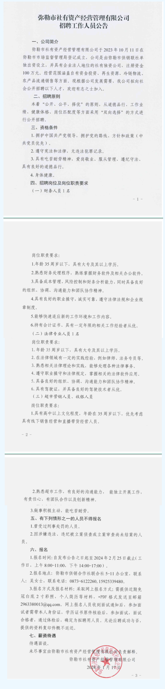 彌勒市社有資產(chǎn)經(jīng)營(yíng)管理有限公司招聘工作人員公告