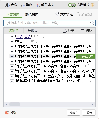 第八步,篩選其他招錄條件,不滿足條件的都去掉。