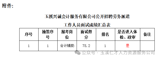 附件:玉溪興誠(chéng)會(huì)計(jì)服務(wù)有限公司公開(kāi)招聘勞務(wù)派遣工作人員公告面試成績(jī)匯總表