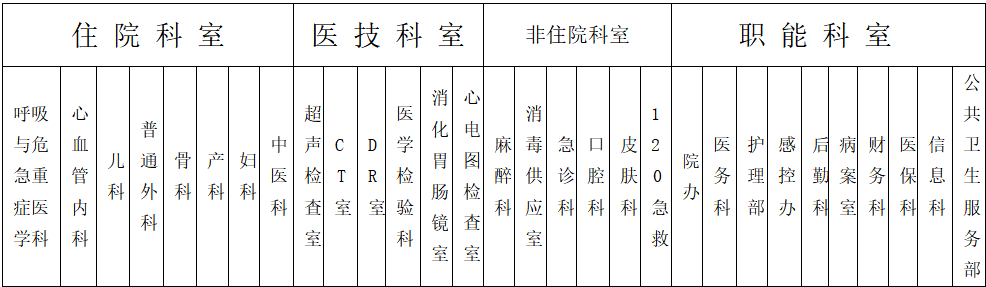 醫(yī)院開展的業(yè)務(wù)有:普外科開展胃腸癌化療、顱腦開顱手術(shù),顱內(nèi)腫瘤切除術(shù)、胃次全切除術(shù)、胃大部切除術(shù)、膽囊切除術(shù)(LC)、膽總管切開探查取石術(shù)、腹腔鏡下成人疝、小兒疝修補(bǔ)術(shù)、隱匿型陰莖術(shù)、腹腔鏡下結(jié)直腸腫瘤根治術(shù),甲狀腺全切、次全切除術(shù)、脾切除術(shù)、精準(zhǔn)肝切除術(shù)、腮腺腫瘤切除術(shù)、胰腺腫瘤切除術(shù)、肝脾破裂修補(bǔ)術(shù)、肛腸PPH吻合術(shù)、闌尾切除術(shù),經(jīng)皮腎穿刺碎石取石術(shù)、經(jīng)尿道前列腺電切術(shù)、腹腔鏡下腎囊腫切除術(shù)、腎輸尿管畸形成形術(shù);婦產(chǎn)科開展子宮陰式或者腹式全切術(shù)、次全切術(shù)、剖宮產(chǎn)、卵巢囊腫摘除、腹腔鏡下子宮腫瘤切除等手術(shù);骨科開展四肢長(zhǎng)骨骨折外固定及切開復(fù)位內(nèi)固定術(shù)、脊柱骨折減壓固定術(shù)、全髖置換術(shù)、脊柱骨折切開復(fù)位釘棒系統(tǒng)內(nèi)固定術(shù)及神經(jīng)外科等手術(shù);兒科開展新生兒病理性黃疸、新生兒缺血缺氧性腦病、新生兒感染性疾病等疾病的診斷治療。常規(guī)開展兒童的呼吸系統(tǒng)疾病如毛細(xì)支氣管炎、肺炎重癥肺炎、支氣管哮喘;兒童的消化系統(tǒng)常見??;感染性疾病如病毒性心肌炎病毒性腦膜炎等疾病的治療,開展新生兒、兒童急救,如心肺復(fù)蘇急性心臟呼吸衰竭、高熱驚厥、輸液反應(yīng)、其他急性意外中毒等急癥處理治療;中醫(yī)科開展中藥治療、針灸、拔罐療法、刮痧療法、艾灸療法、放血療法、中藥外敷、熏蒸及外洗、藥線點(diǎn)灸、推拿治療、穴位貼敷、穴位注射、牽引、穴位埋線、耳穴、痔瘡溫水坐浴、中藥熏洗等技術(shù),在診治頸椎病、肩周炎、腰椎間盤突出癥、坐骨神經(jīng)痛、膝關(guān)節(jié)痛、偏頭痛、腰肌勞損、落枕、扭挫傷、風(fēng)濕疾病、中風(fēng)后遺癥、肝膽脾胃病內(nèi)系疾病以及常見皮膚?。畀?、蕁麻疹、濕疹、帶狀皰疹、銀屑病、毛發(fā)及甲等皮膚真菌感染)、常見肛腸疾?。▋?nèi)痔、外痔、混合痔、肛瘺、肛周膿腫、肛周濕疹)等具有獨(dú)特的治療方式。心內(nèi)科在冠心病、急性冠脈綜合征(急性心肌梗死、不穩(wěn)定心絞痛)、高血壓、心力衰竭、心律失常、風(fēng)濕性心臟病、心肌病等心血管疾病,內(nèi)分泌科、神經(jīng)內(nèi)科常見病、多發(fā)病的診斷及治療上有著豐富的經(jīng)驗(yàn)。對(duì)急危重癥患者的診斷、治療、搶救、護(hù)理技術(shù)已經(jīng)成熟,熟練掌握了心肺復(fù)蘇、氣管插管、電復(fù)律、藥物復(fù)律、電除顫等搶救技術(shù),心肌梗死溶栓治療技術(shù)已經(jīng)成熟,溶栓成功率高達(dá)83%。呼吸與危重癥醫(yī)學(xué)科是集呼吸內(nèi)科、消化內(nèi)科、急診搶救為一體的綜合科室,開展呼吸內(nèi)科、消化內(nèi)科常見病、多發(fā)病的診治,肺功能檢測(cè),對(duì)阻塞性肺疾病、支氣管哮喘、肺心病、呼吸衰竭、心衰、過敏性休克、失血性休克、上消化道出血、肝硬化、腹水等急、危重癥和有機(jī)磷農(nóng)藥、烏頭堿中毒、殺鼠劑以及各種理化因素中毒等疾病均有豐富的治療經(jīng)驗(yàn)。急診科承擔(dān)轄區(qū)內(nèi)及周邊內(nèi)科患者的急診、急救工作,全科人員均熟練掌握心肺復(fù)蘇及急危重癥的院前、院內(nèi)急救處置工作,對(duì)各種急危重癥鑒別與處理、各種農(nóng)藥中毒、一氧化碳中毒等疾病有豐富的臨床經(jīng)驗(yàn)和過硬的急救技能。