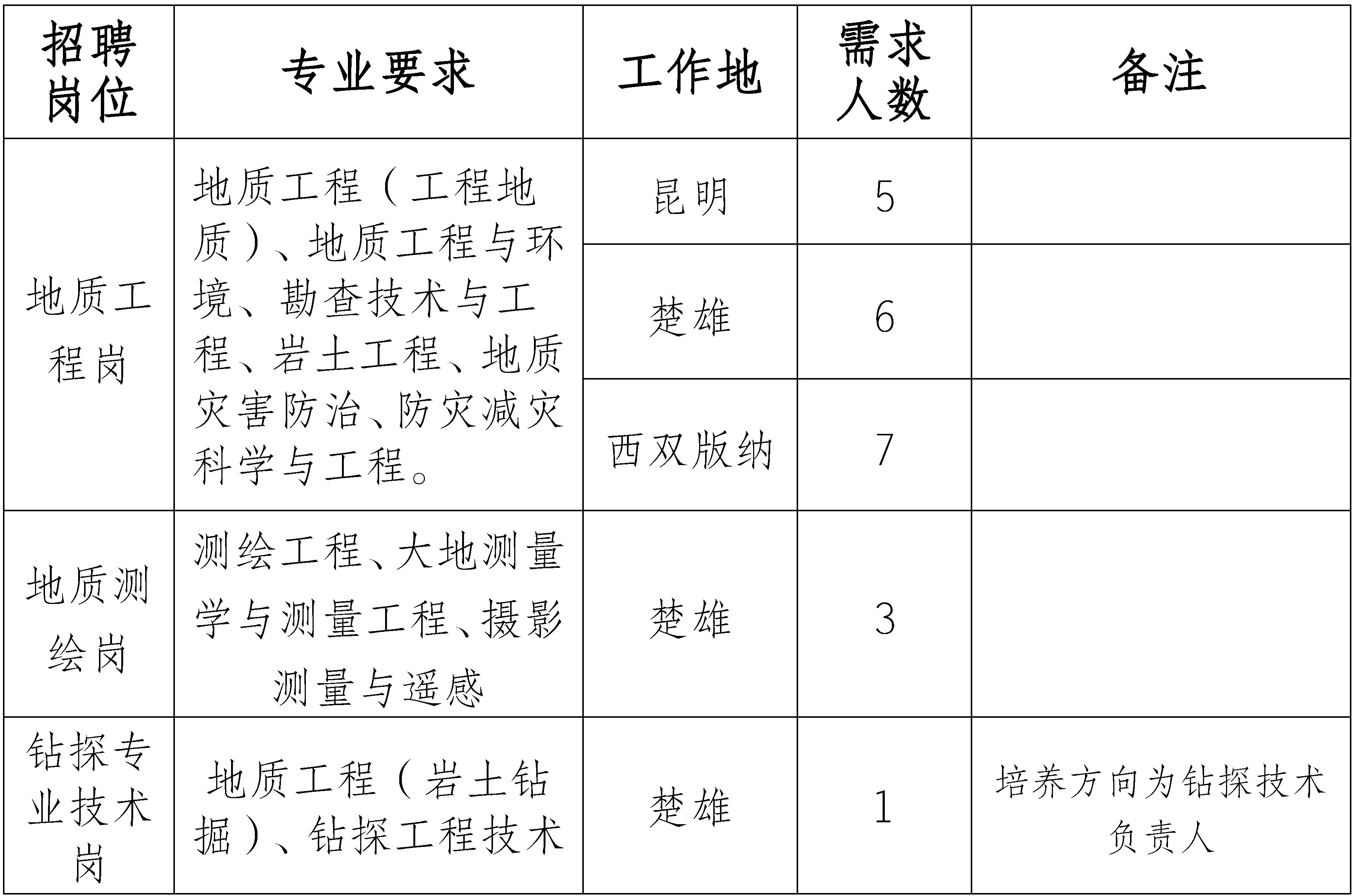 云南地質(zhì)工程第二勘察院有限公司2024年招聘公告