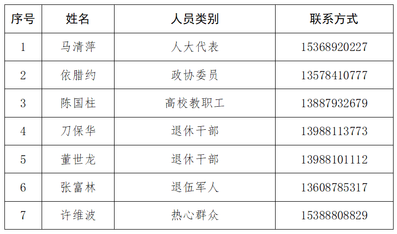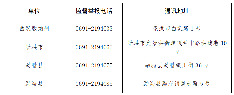 西雙版納州廉潔征兵監(jiān)督員及聯(lián)系方式