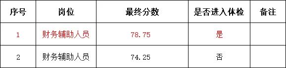 關于公開招聘財務輔助崗工作人員面試成績公示及進入體檢人員的通知