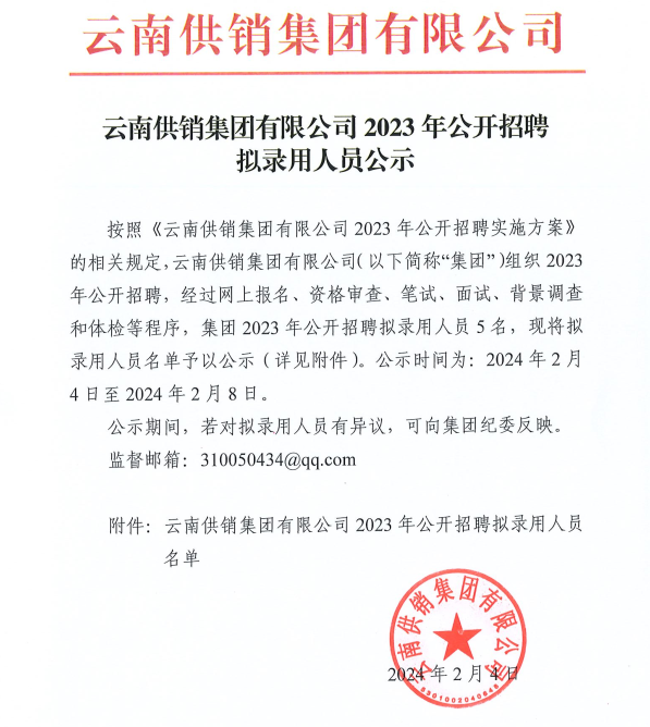 附件:《云南供銷(xiāo)集團(tuán)有限公司2023年公開(kāi)招聘擬錄用人員名單》