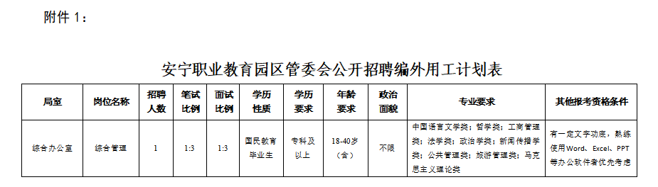 附件:1.安寧職業(yè)教育園區(qū)管委會公開招聘編外用工計劃