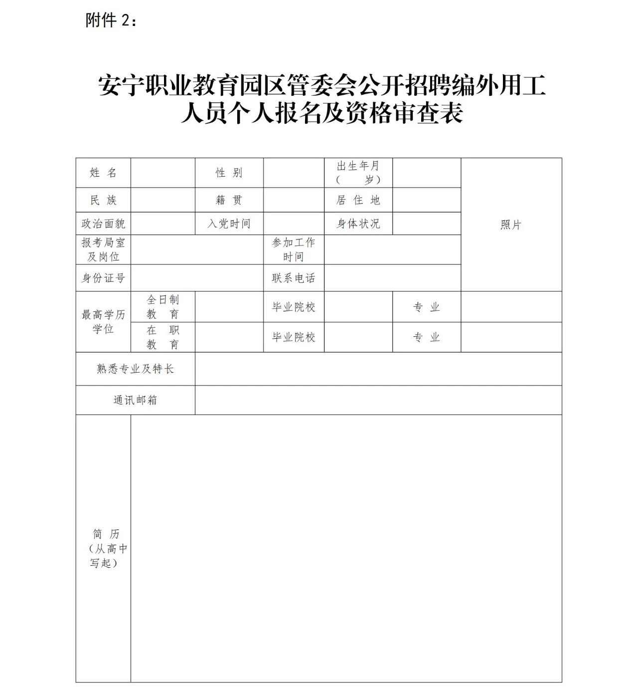 2.安寧職業(yè)教育園區(qū)管委會公開招聘編外用工人員個人報名及資格審查表