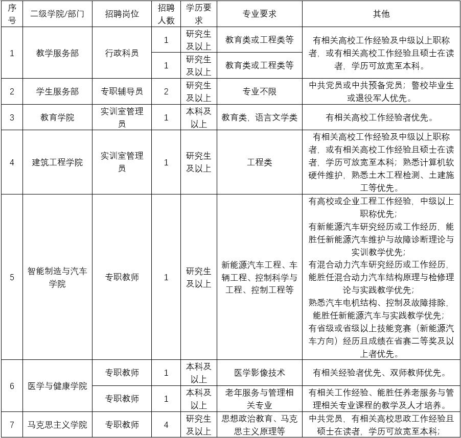 專職教師、專職輔導(dǎo)員、行政人員、技術(shù)人員招聘需求