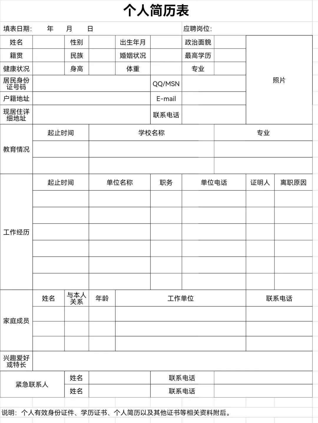 附件:個人簡歷表