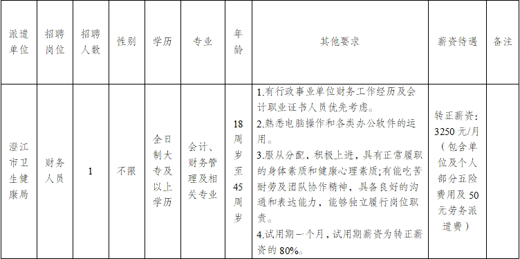 澄江市衛(wèi)健局因工作需要,委托澄江市啟澄人力資源有限責任公司,面向社會公開招聘財務人員1名,現將有關事項公告如下: