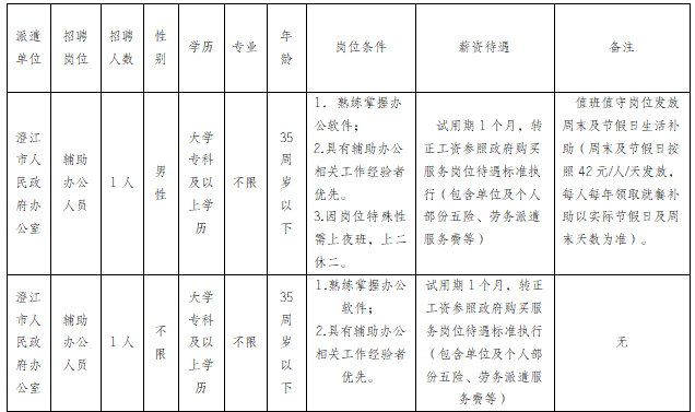 3.年齡及性別要求:35周歲及以下,值班值守崗位限男性、輔助辦公人員不限性別;