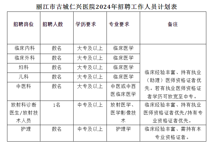 麗江市古城仁興醫(yī)院招聘工作人員公告