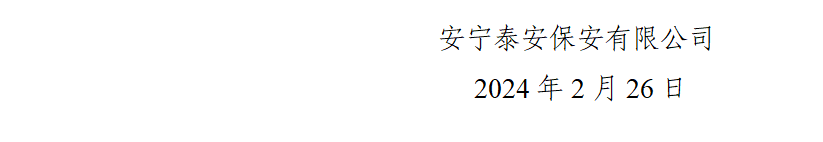 3.面試成績及綜合成績將在“安寧泰安保安”公眾號進(jìn)行公示,公示時間為3個工作日,公示期間如有任何疑議,可向安寧泰安保安有限公司反映(監(jiān)督電話:68686289)。
