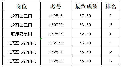 根據(jù)《丘北縣雙龍營鎮(zhèn)中心衛(wèi)生院非在編職工招聘公告》有關(guān)規(guī)定,經(jīng)筆試、面試程序,現(xiàn)將丘北縣雙龍營鎮(zhèn)中心衛(wèi)生院2024年2月公開招聘非在編崗位人員綜合成績予以公示。