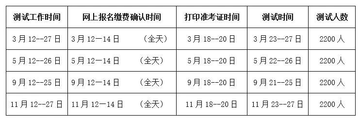 (二)2024年共安排4次測試,每次測試5天,(詳見附件1)每位考生(每個身份證號碼)只能選擇其中一次的某一天進行報名繳費,具體以附件1和云校云小程序所公布的考試時間為準。因多報、多繳而導(dǎo)致不能考試、不能退費,其后果自負。