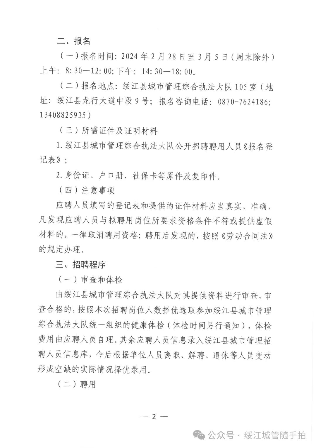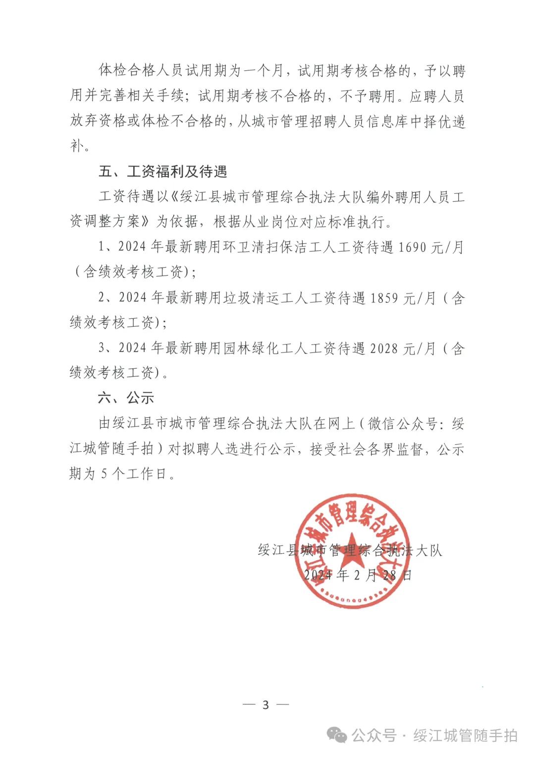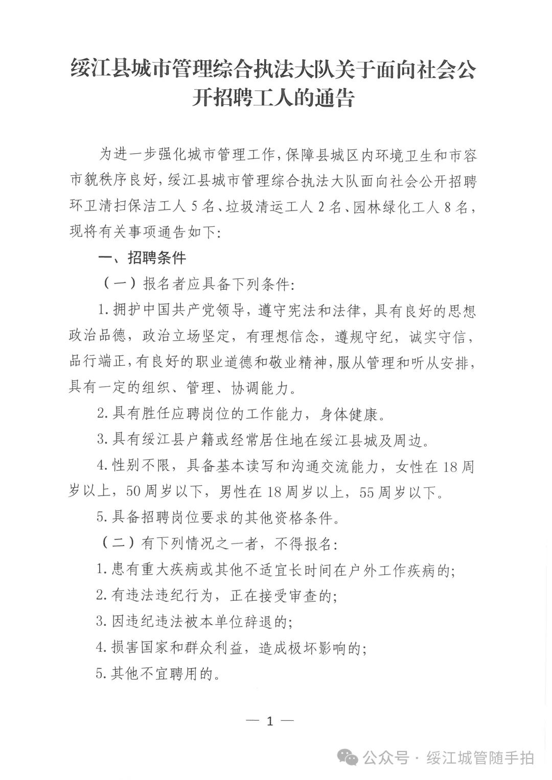 綏江縣城市管理綜合執(zhí)法大隊(duì)關(guān)于面向社會(huì)公開招聘工人的通告