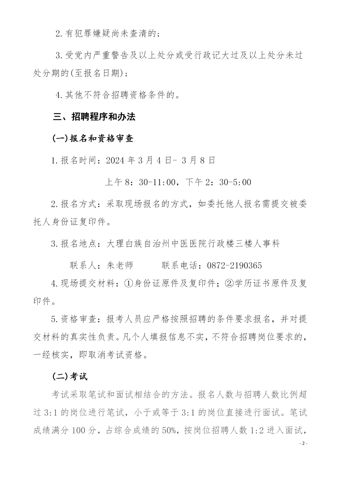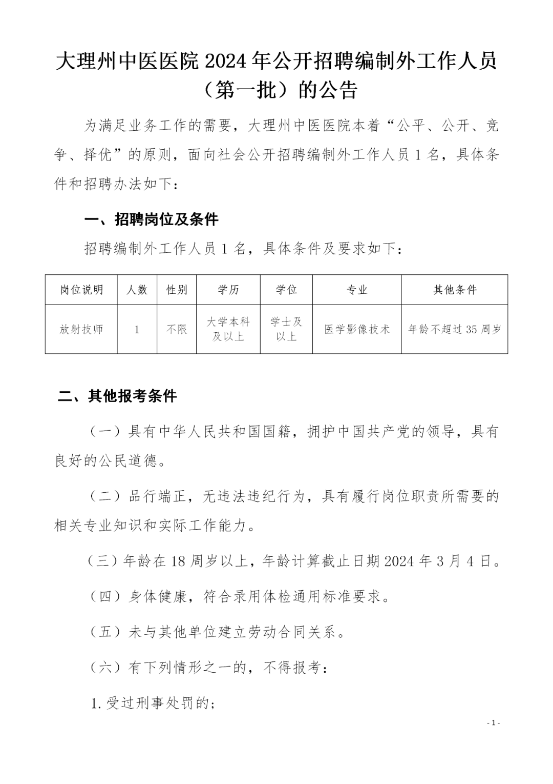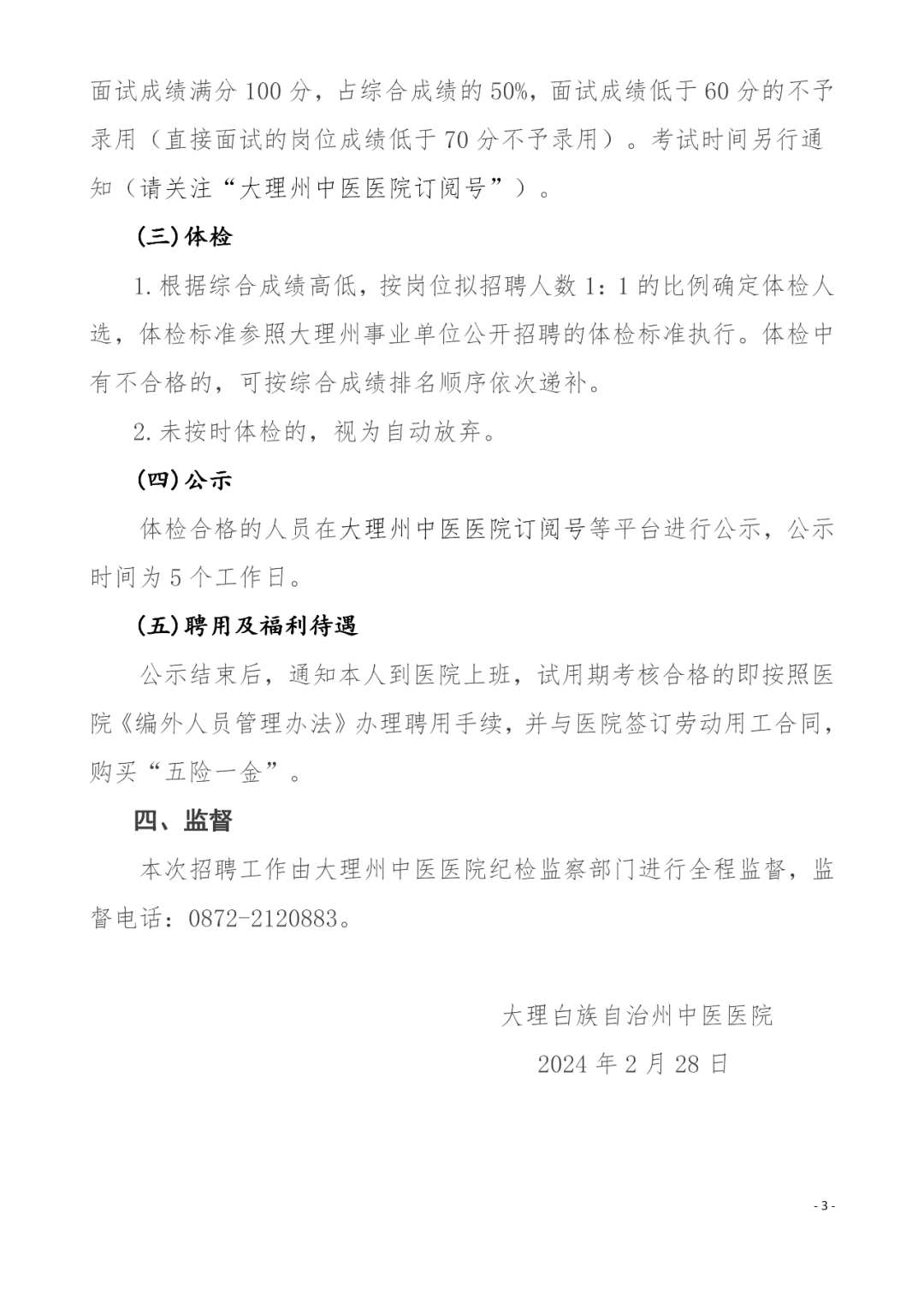 大理州中醫(yī)醫(yī)院2024年公開招聘編制外工作人員(第一批)的公告
